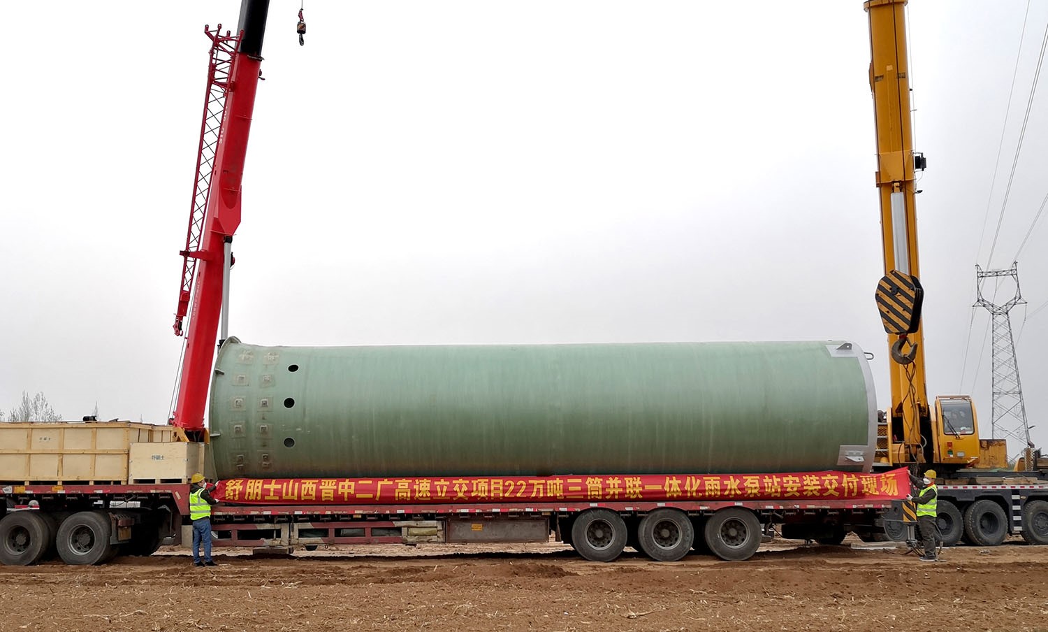 针对晋中综合通道下穿二广高速立交桥雨水排水问题,best365英国在线体育设计定制了一套双筒并联,直径3.8米,高13米的一体化预制雨水泵站。泵站选址在综合通道东侧绿带内,主要排除道路雨水,经泵站抽排至下游雨水管,汇水面积约为6.0ha,泵站设计规模为2.5m³/s。