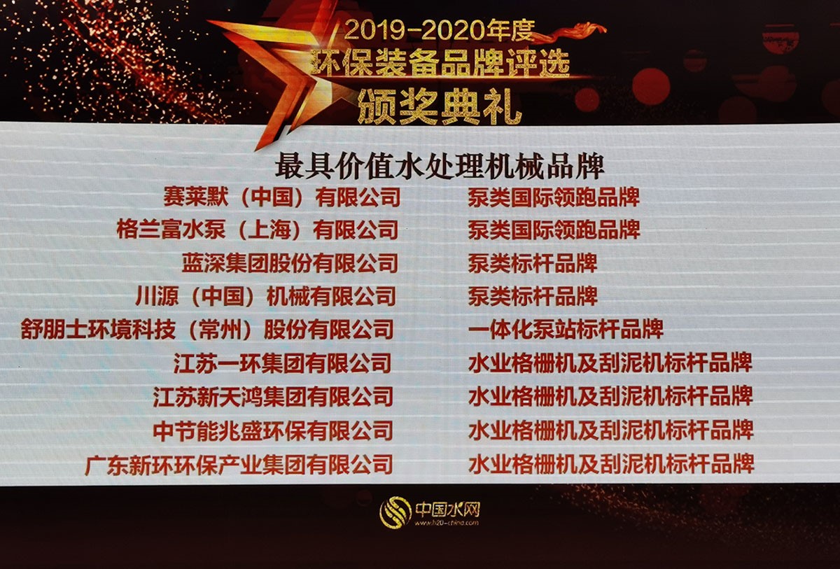 best365英国在线体育环境科技(常州)股份有限公司荣获2020(第十二届)上海水业热点论坛“一体化泵站标杆品牌”。