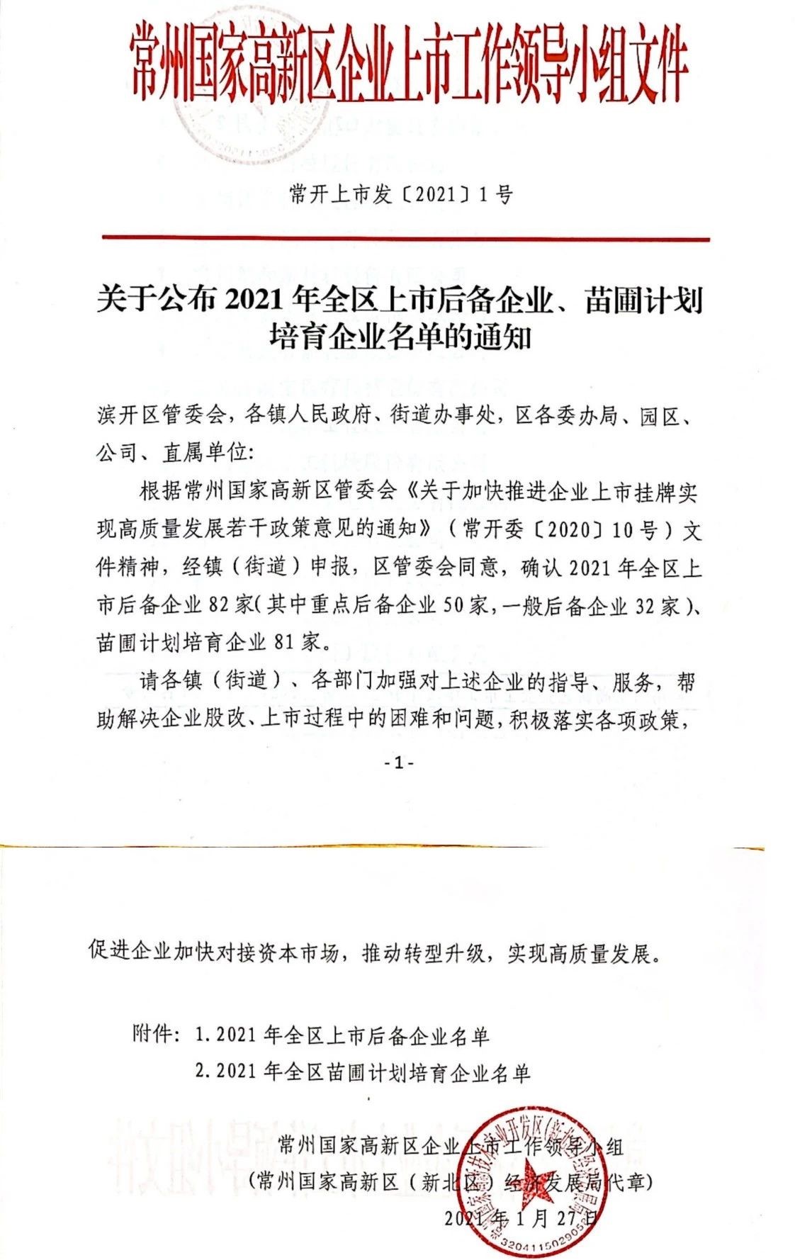 会议确认了2021年全区上市后备企业82家、苗圃计划培育企业81家。best365英国在线体育环境科技(常州)股份有限公司上榜2021年度常州国家高新区苗圃计划培育企业名单。