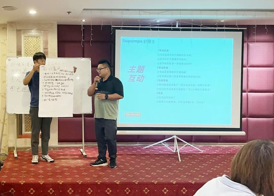 16日上午,针对一体化预制泵站技改、升级、新品发布以及市场营销方面开展了头脑风暴与话题互动,各小组成员纷纷献计献策,展开了激烈的讨论并给出宝贵的意见。
