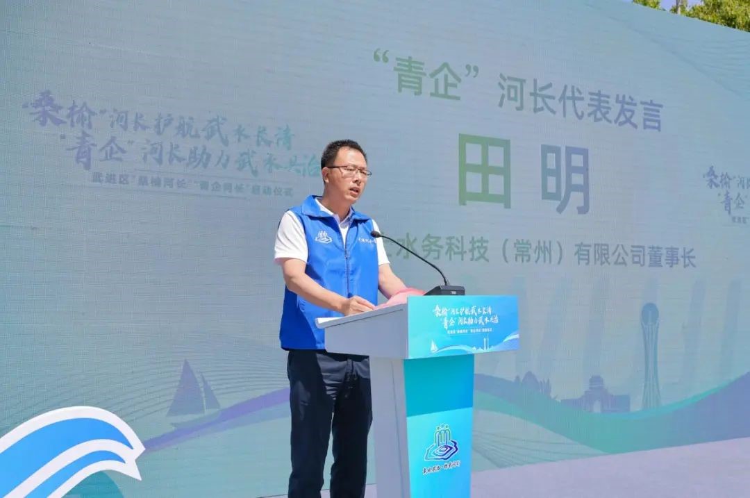 启动仪式上,区河长办主任、水利局局长刘建荣致欢迎词,“桑榆河长”、“青企河长”代表分别作表态发言,裴红鑫和朱岩为两支队伍授旗,标志着武进区“桑榆”、“青企”两支民间河长队伍正式成立。